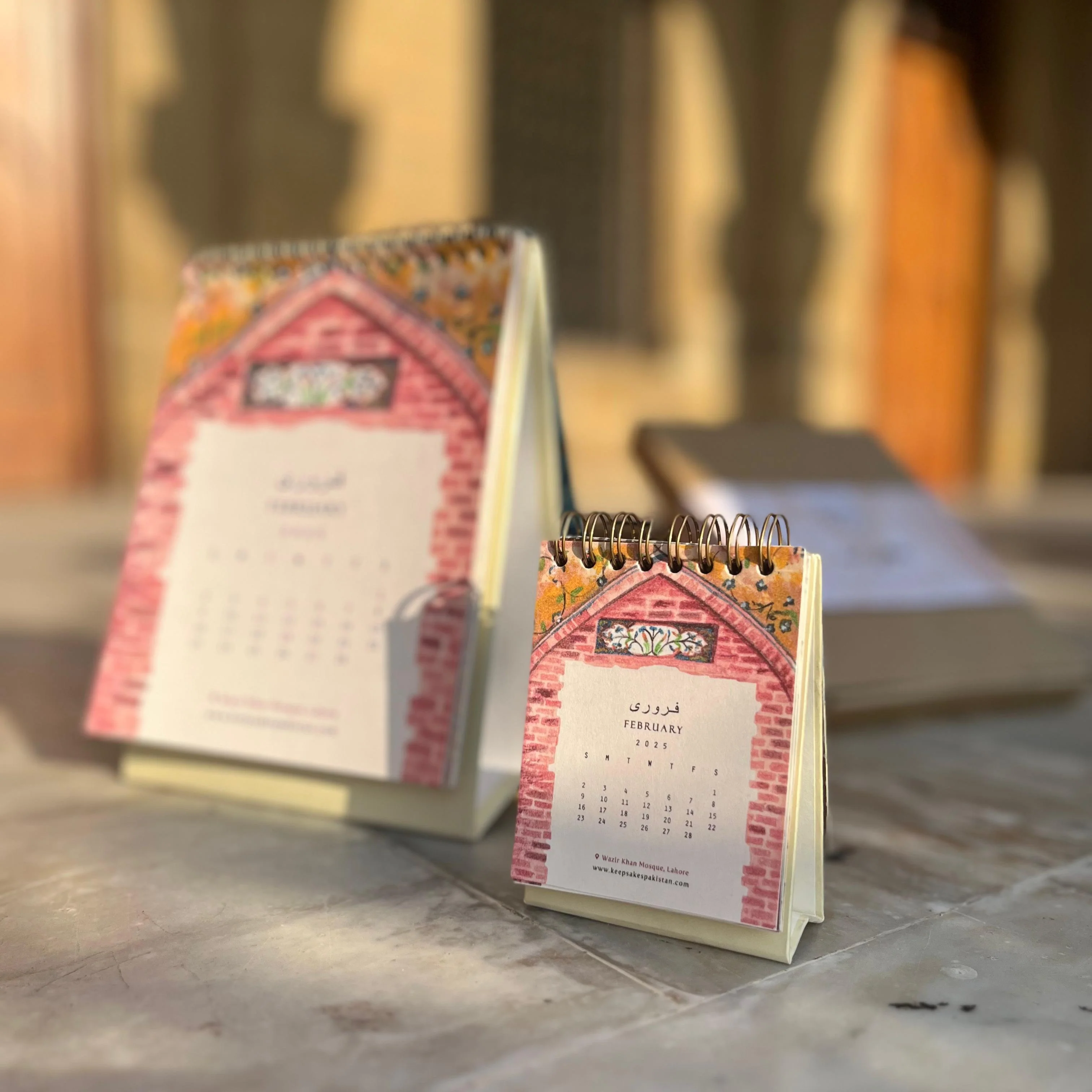 Immerse yourself in the architectural marvels while exploring the historical art and architecture of Pakistan. An artisanal collection of 12 diverse watercolour paintings of Mehraabs (arches) from across the country, covering the beauty of art in Balochistan to intricate wood work from Gilgit Baltistan, from historical mosques in Sindh to masterpieces from the Mughal era in Punjab. This premium calendar is a must-have for those seeking a sophisticated and exclusive touch to their new year planning.